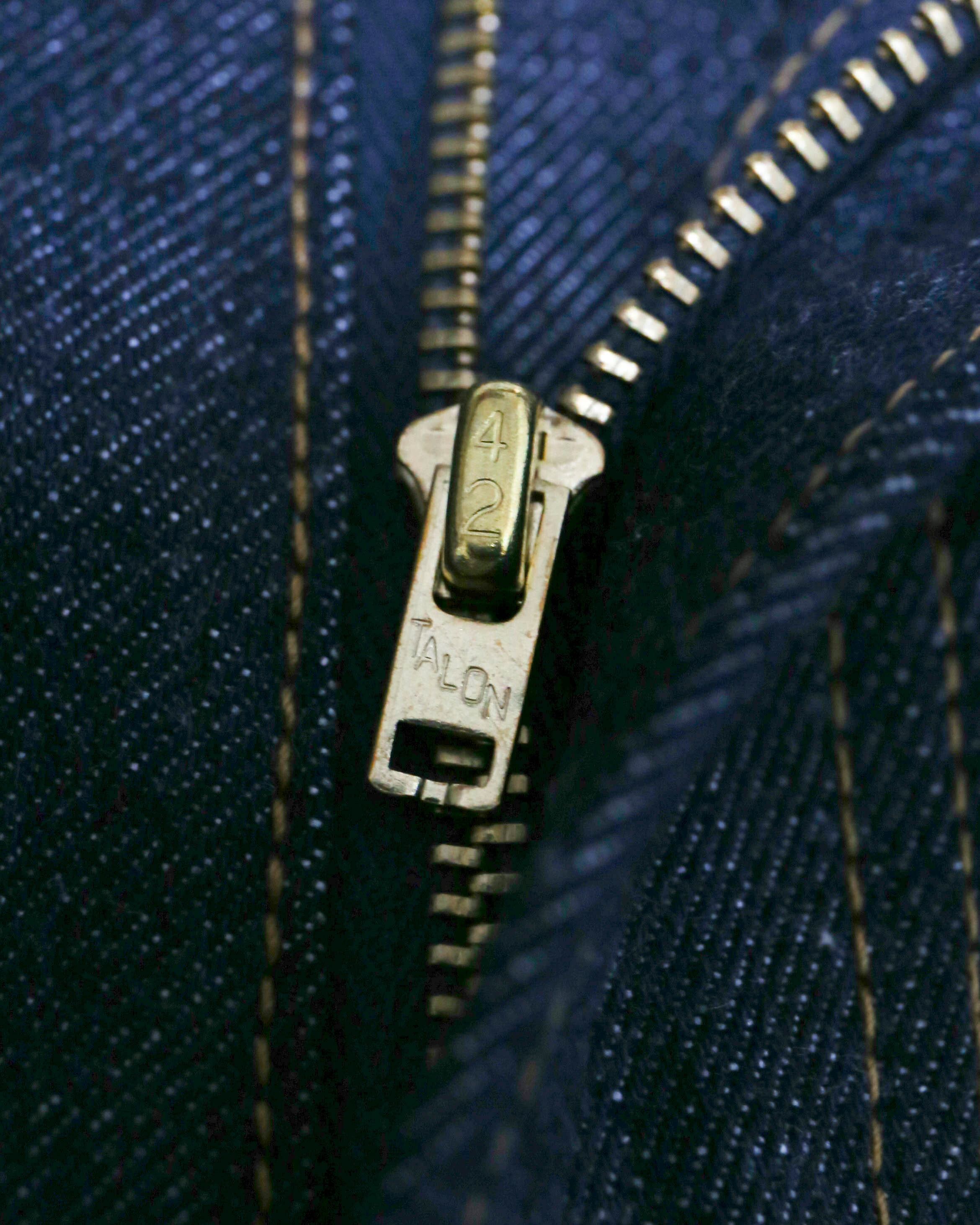 時代背景を踏まえ、オールオレンジステッチで縫製箇所により綿糸とコア糸を使い分け、シンガーやユニオンスペシャルといったヴィンテージミシンを使用し、熟練の縫製師により、縫い上げています。