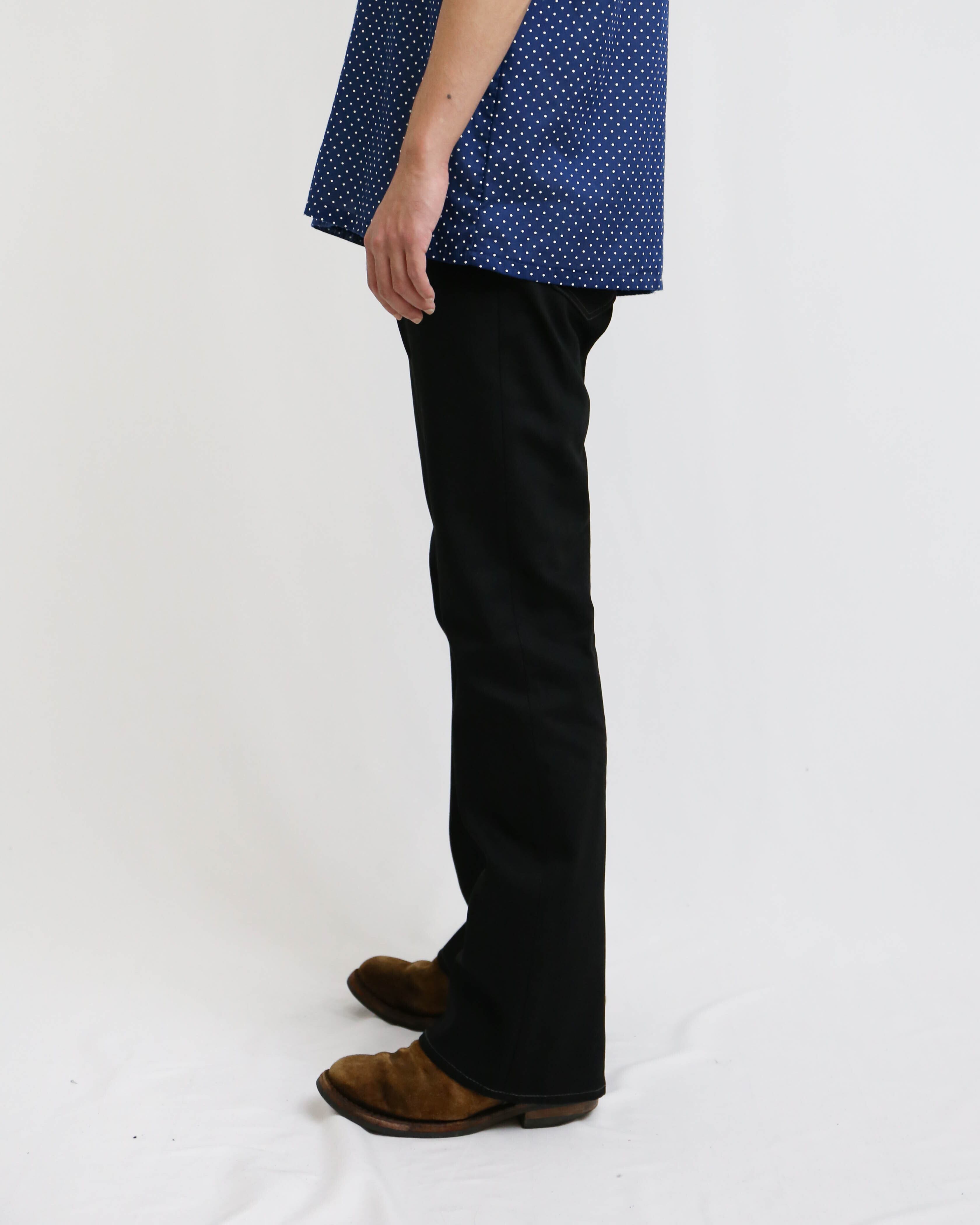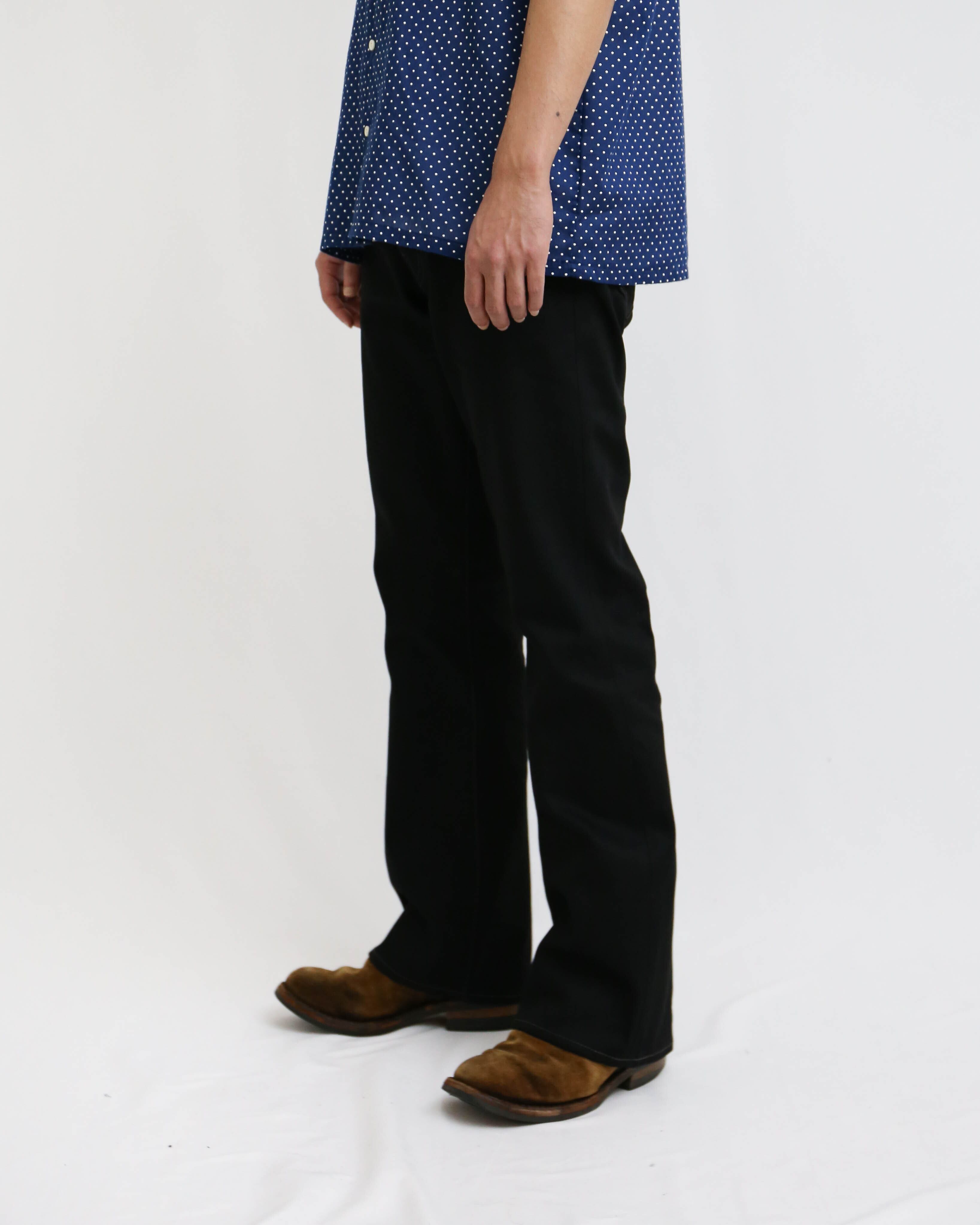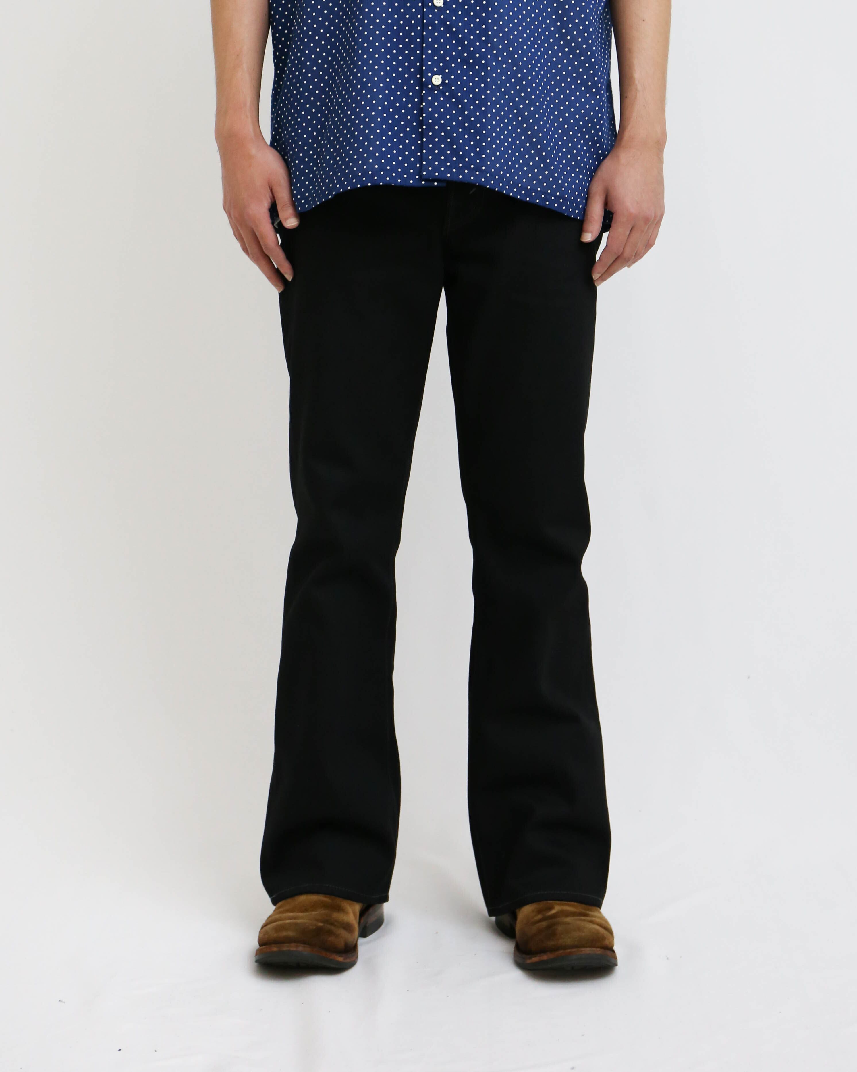 1970年代前半のLevi'sの517のディテールや縫製仕様、パターンを元に製作したブーツカットのブラックジーンズ。