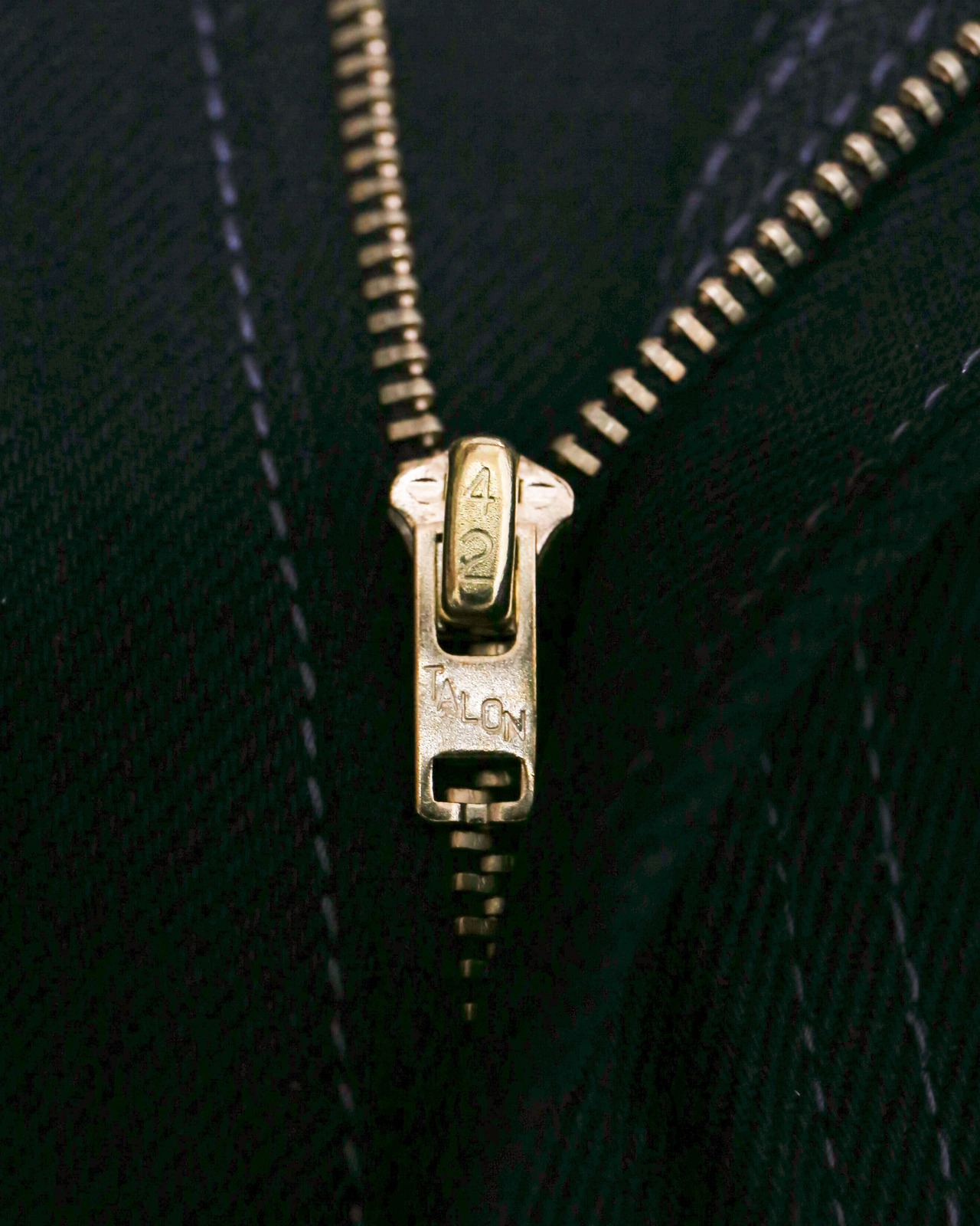 生地は、1990年代のLevi'sのサルファーブラック(通称 後染め)の生地を指標に制作した約14オンスの生地を使用。
