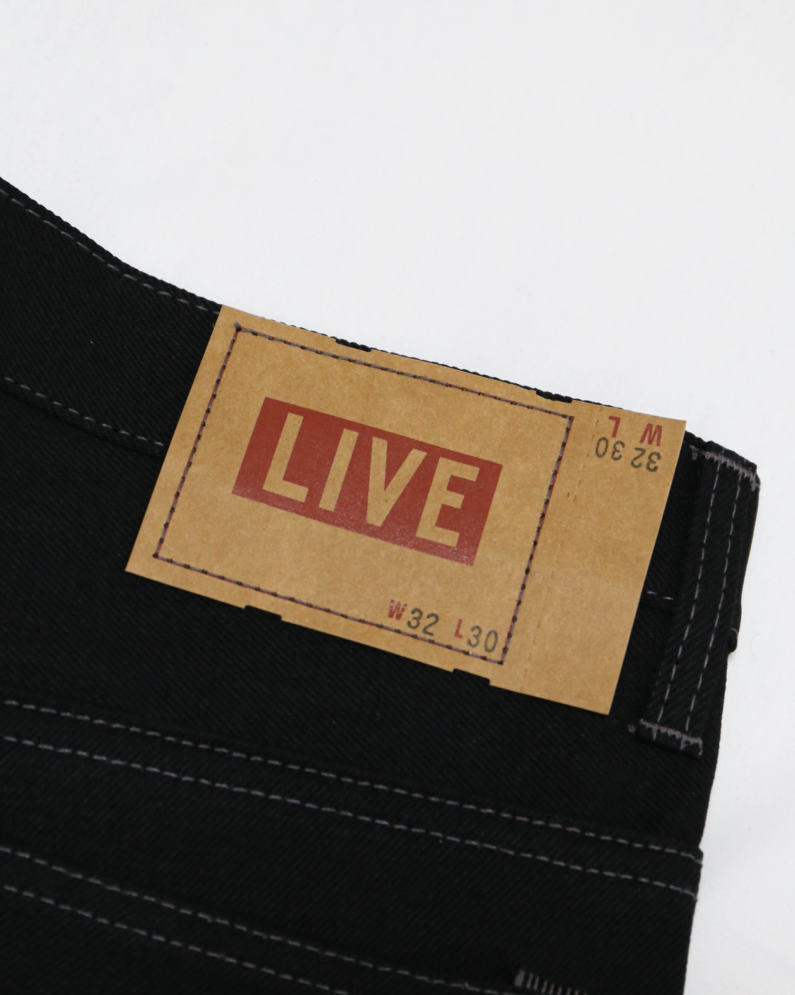 生地は、1990年代のLevi'sのサルファーブラック(通称 後染め)の生地を指標に制作した約14オンスの生地を使用。