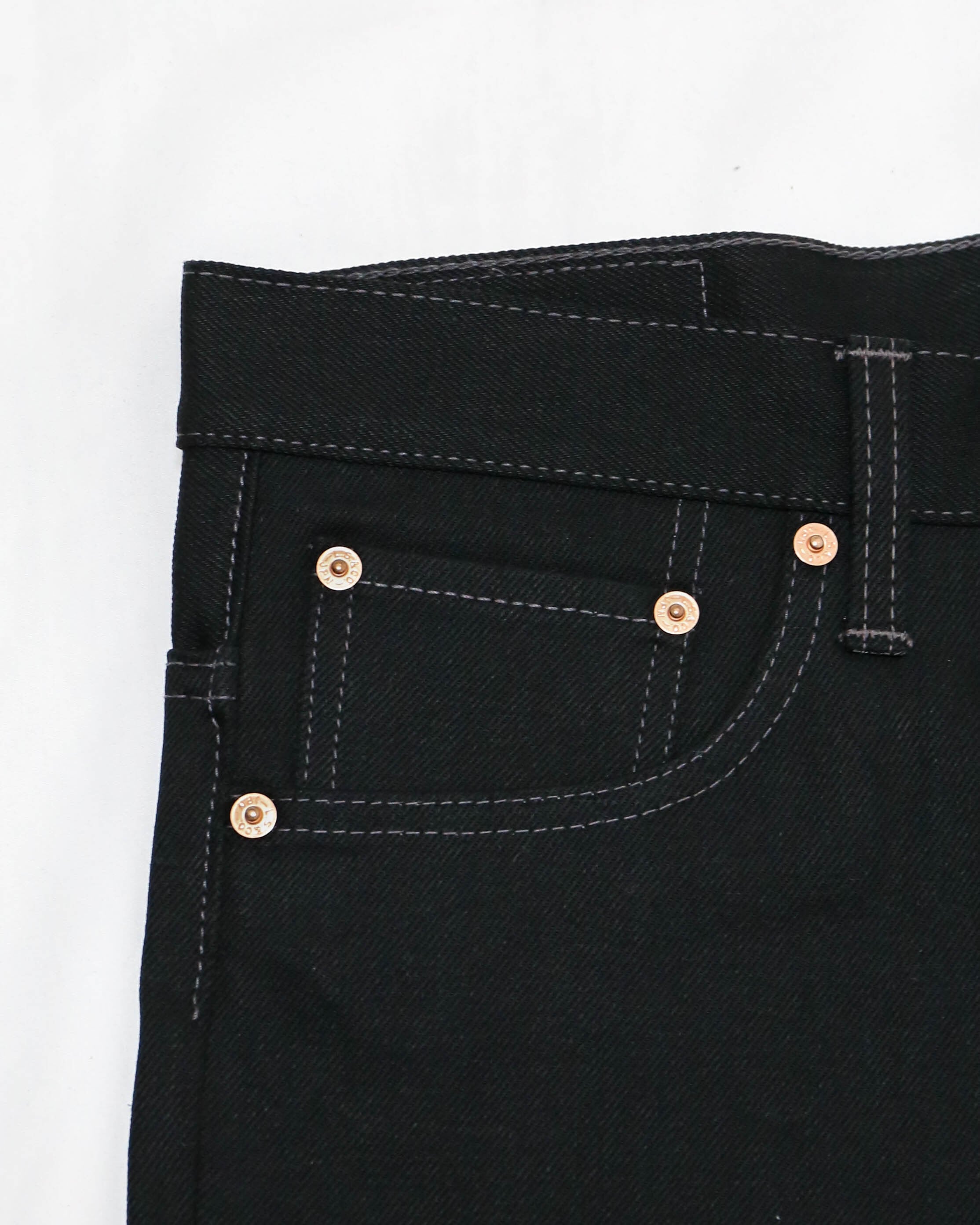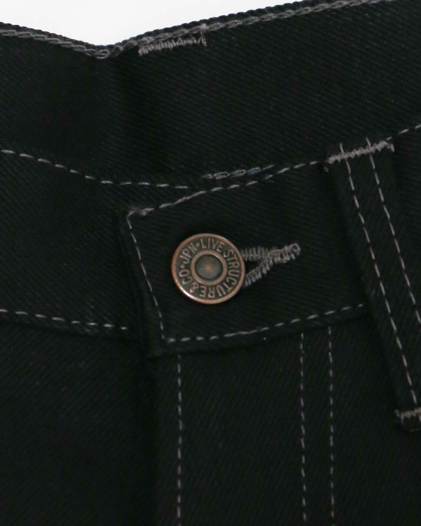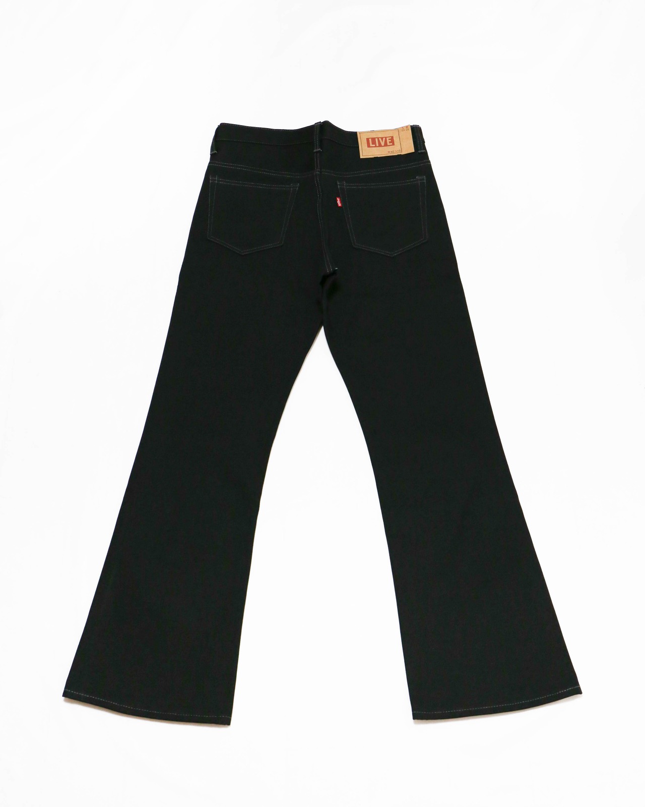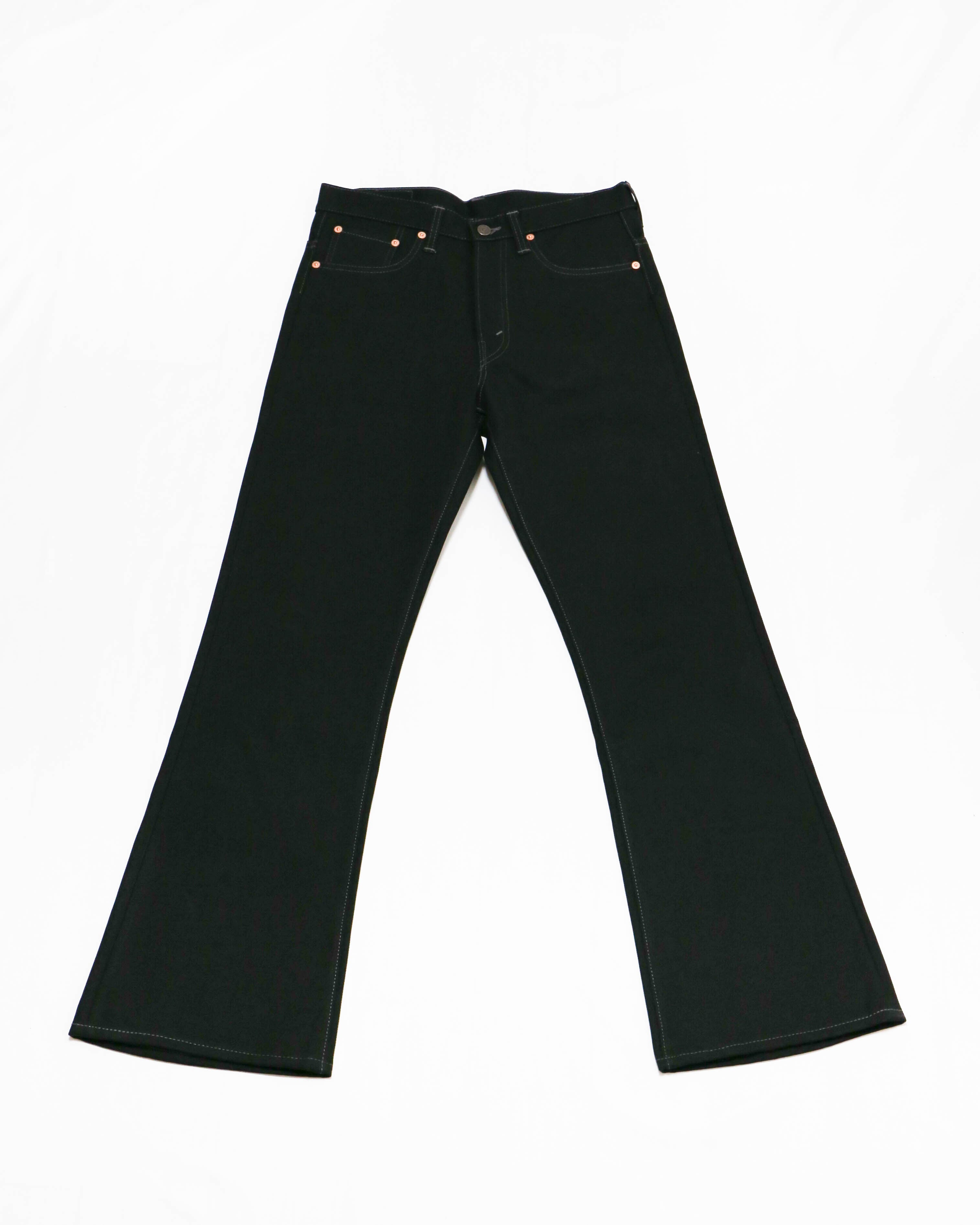 1970年代前半のLevi'sの517のディテールや縫製仕様、パターンを元に製作したブーツカットのブラックジーンズ。